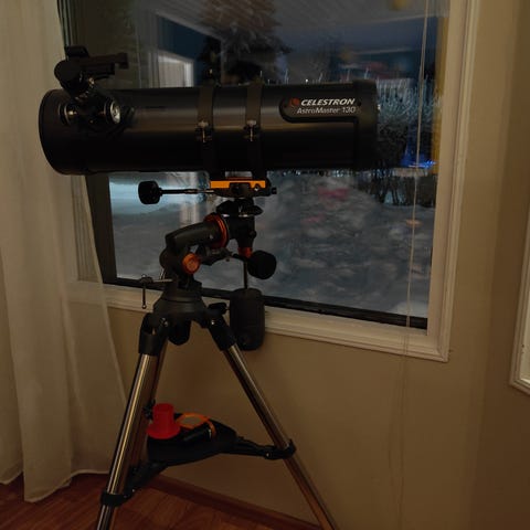 Uusien laitteiden tieltä väistyvä akromaattiputki ja atsimutaalinen jalusta siis kaupan. Kuvassa prismaan kiinnitetty kahden tuuman zoom-okulaari ei kuulu kauppaan. Mukana tulee myös pari okulaaria: "SUPER 10mm" ja "SUPER 25mm Wide Angle - Long Eye Relief", sekä kahden tuuman prisma ja 2x Barlow. Ainoastaan nouto tai mahdollisesti toimitus Oulun elueelle.