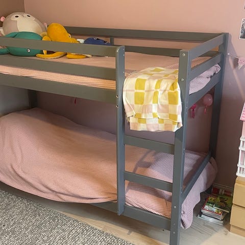 Lasten pienempi kerrossänky. Käytönjälkiä on ja muutama pultti saattaa puuttua, mutta suoraan käytöstä. Toimii! 😊