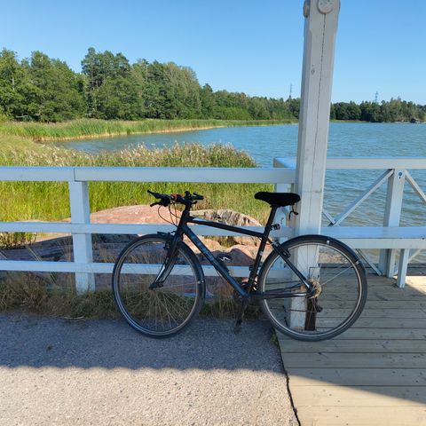 Alumiini runko, koko L. Renkaat 700c x 32mm, hiekallekin sopivat renkaat, mutta kaupungissa hyvin toimivat.