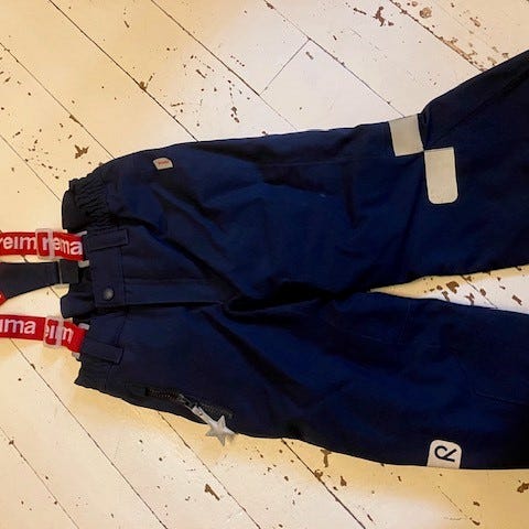 Reima henkselihousut kevyellä toppavuorella. Koko 92. Väri tummansininen. Materiaali pääosin polyamidia, vuori polyesteriä. Haalarissa on säädettävät henkselit, etuvetoketju ja neppari sekä joustoresorit vyötäröllä ja lahkeissa. Ehjät lenksut mukana. Ei juuri kulumaa tai värin haalistumaa.