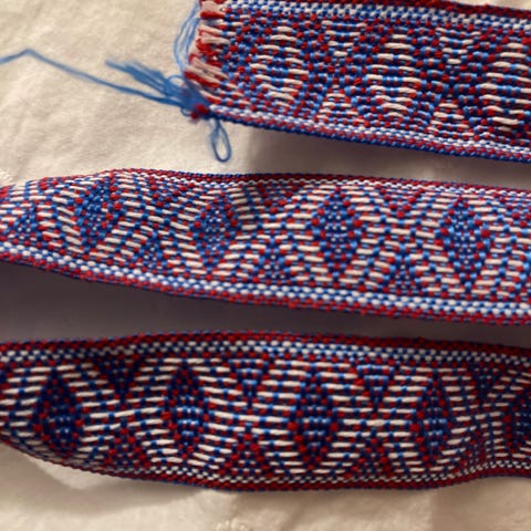 Pirralla voi kutoa pirtanauhoja . Tai sellaisia kapeita töitä. Työ leveys 19cm