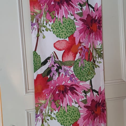 Pentikin kaunis kaitaliina myyntiin. Jäänyt kaappiin, nyt eri kokoinen pöytä. Kunto uutta vastaava. Koko 46x160 cm. Puuvillaa, akryylipinnoite.