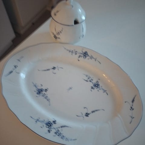 Jalallinen tarjoilukulho, Royal Copenhagen ”Musselmalet”, Tanska. Malli no 511.