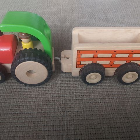 Kilpa-auto äänitehosteilla ja traktori + peräkärry. Traktorissa huomiovalot ja äänet, peräkärryssä kippimekanismi. Molemmat toimivat, hiukan naarmuja.