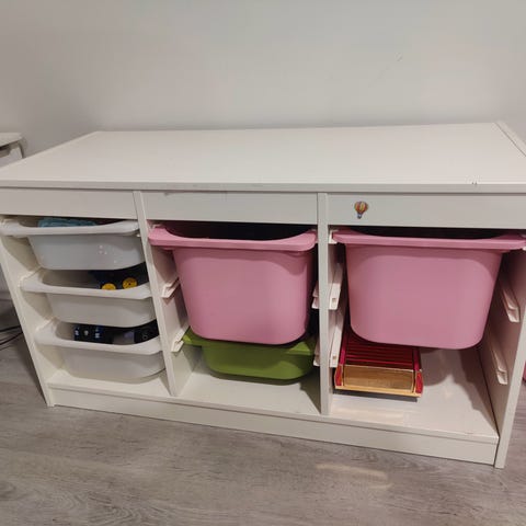 Myydään Ikean trofast hylly kuvassa näkyvien laatikoiden kanssa. Puunvärinen. Ehjä, mutta kolhuja ja muita käytönjälkiä löytyy (katso kaksi kuvaa kannesta).