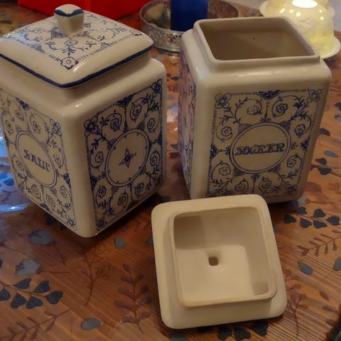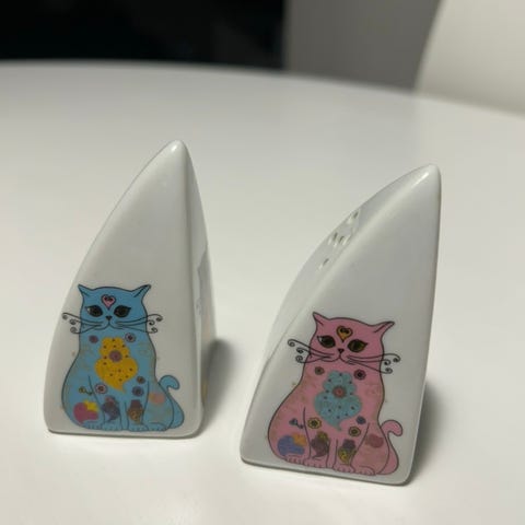 Myydään ihanat keraamiset, suomalaista käsityötä ( Anne Matinlaurin tekemät) sokeri ja suola sirottimet.
