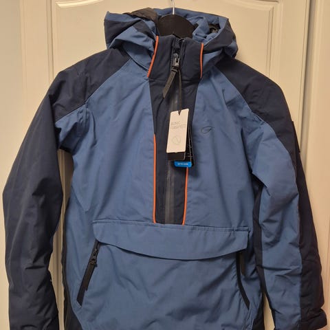Five Seasons lasten takki, koko 152. Väri harmaa, tehosteina sinisiä yksityiskohtia. Materiaali polyesteriä, pinta nylon. Takissa on irrotettava tai säädettävä huppu, vetoketjukiinnitys ja useita vetoketjullisia taskuja edessä. Hihansuissa on tarrakiristys ja sisällä verkkotasku sekä alhaalla kiristysnauha. Unisex-malli, sopii sekä tytöille että pojille laskettelu, ulkoilu- ja arkikäyttöön. Erittäin vähän käytetty.