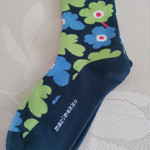 Marimekko Pirtti Unikko -sukat. Kuvioidut, kirjavat puuvillasukat, joissa on Unikko-kuosi. Materiaalina puuvilla- ja synteettisten kuitujen sekoite, joka tuo joustavuutta ja kestävyyttä. Sopivat jokapäiväiseen käyttöön. Koko 37–39 (merkitty pakkaukseen).