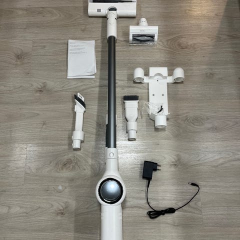 Mukaan imurin lisäksi laturi, erilaisia imupäitä ja seinäteline. Lisäilen kuvia, kunhan härveli pesun jäljiltä kuivuu, mutta sama kuin linkin takana (missä myös tekniset tiedot ja arvosteluja): https://www.verkkokauppa.com/fi/product/896599/Dreame-R10-varsi-imuri