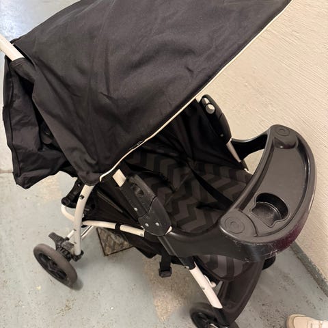 Petite Cherie lastenrattaat vaaleanpunaisella, kuviollisella kankaalla. Rattaissa on kuomu, turvavyöt ja edessä irrotettava turvakaari. Työntöaisassa on mukitelineet ja säilytyslokerot. Alla on tavarakori pienten kantamusten kuljettamiseen. Sopii yhden lapsen kuljettamiseen arjen matkoilla.
