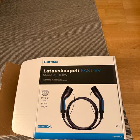Carmax FAST EV Latauskaapeli, Mode 3, 22 kW, 400 V, 3-32 A, Type 2 -liitin, pituus 5 metriä, sininen väri. Sopii sähköautoihin, joissa on Type 2 -liitäntä