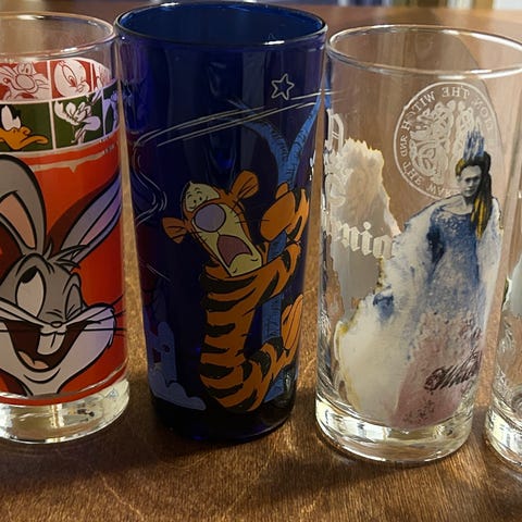 Yhteishintaan. Klonkku ja Merri juomalasit Kuninkaan Paluu elokuva ajalta. Hyvässä kunnossa.