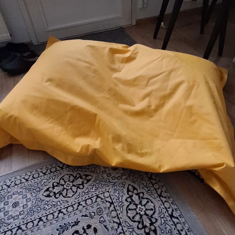 Turkoosi ja musta säkkituoli. Voi ostaa erikseen (20 €/kpl).
