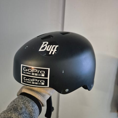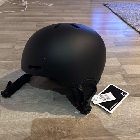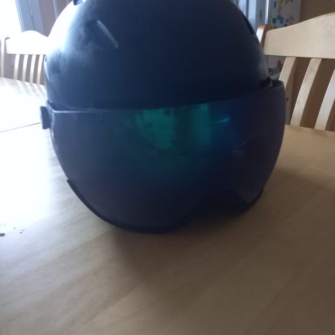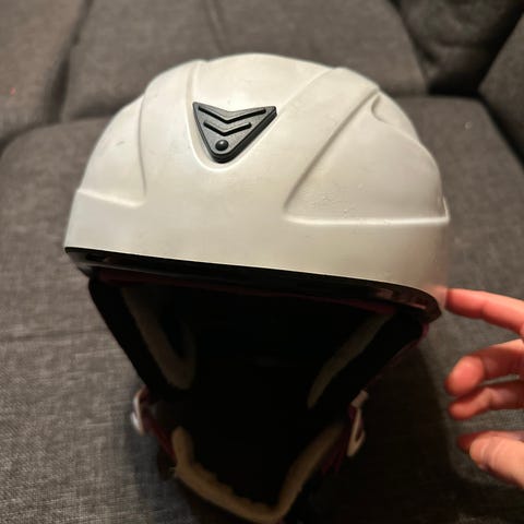 Vajaan kauden käytössä ollut kypärä. Korvaläpät mukana irrallaan.