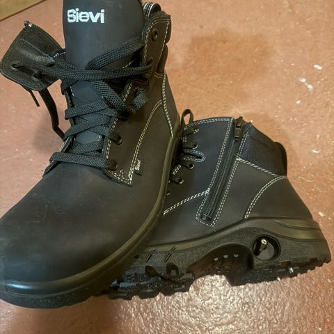 Sievi turvasaapikas, koko 42. Mustat, nilkan yli ulottuvat talvikengät, joissa vetoketju sivulla. Päällinen sileää mustaa nahkaa ja sisäpuolella lämmin vuori. Pohjassa karkea kuviointi, joka on suunniteltu tarjoamaan pitoa talvikeleillä. Soveltuvat yleiseen talvikäyttöön ulkona.