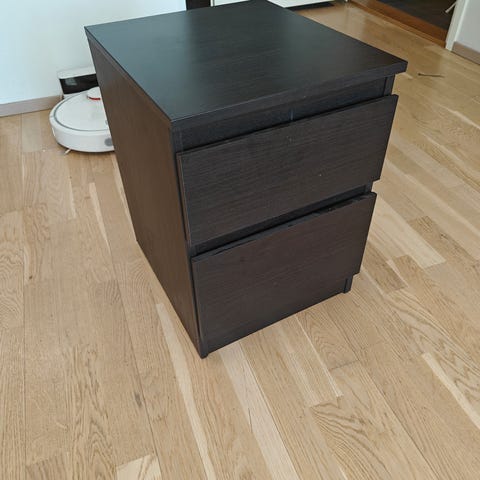 Hyväkuntoinen yöpöytä kahdella vetolaatikolla. Mitat 45x40x47. Sisälaatikoiden mitat L36, S33. Nouto Tampereen keskustasta