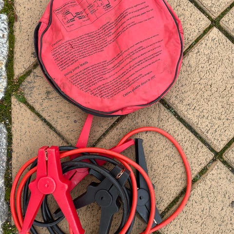 Käynnistyskaapelit, joissa punainen ja musta kaapeli sekä jousipuristimet akun napoihin kiinnittämistä varten. Soveltuvat ajoneuvon akun apukäynnistykseen toisen akun avulla. Pituus ei tarkasti tiedossa kuvien perusteella. Käytettävä ohjeiden mukaan ja varmistettava yhteensopivuus oman ajoneuvon akun ja sähköjärjestelmän kanssa.