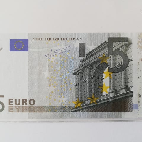 Taiteltu paperivene viiden euron setelistä. Hienosti taiteltu ja ei ole repeämiä myöskään. Seteli on käyttökelpoinen jos sen avaa