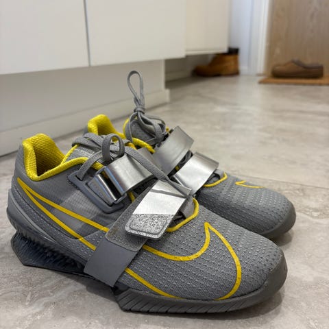 Vähälle käytölle aikanaan jääneet painonnostokengät. Koko 42. Siisti kunto. Toisen kengän sisäpohjallisessa halkeamia, kengän ollessa jalassa asiaa ei huomaa jäykän pohjarakenteen vuoksi. Pohjallisen päällipuoli siis ehjä. Muuten täysin ehjät kengät.