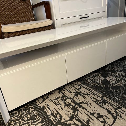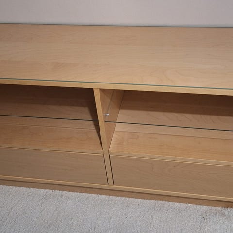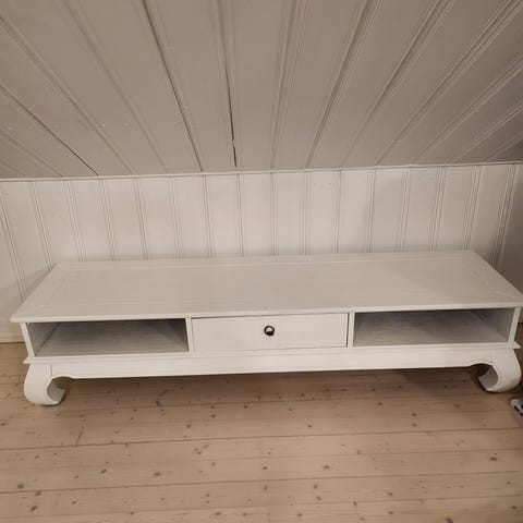 Massiivipuinen tv-taso, 3 laatikkoa.