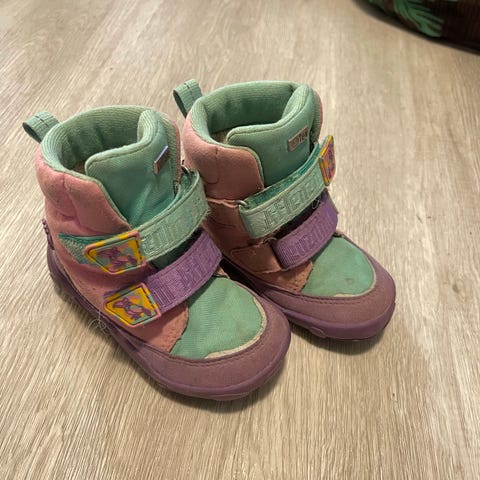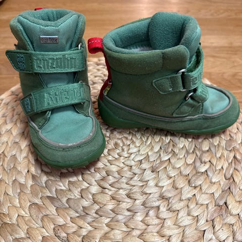 Myydään Affenzahn talvikengät kokoa 24 hintaan 15 euroa. Kengät ovat hyvässä käytetyssä kunnossa. Ulkoa kaikki pinnat ehjät, pohjat erinomaisessa kunnossa. Jalkapöydällä oleva terenauha kulunut mutta ei vaikuta ominaisuuksiin. Mukaan ylimääräiset villapohjalliset, leikattu kengän oman pohjallisen muotoon.