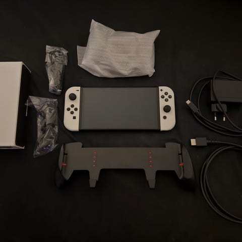 Paketissa mukana: Telakka, itse switch, 2 joy con paria ja niihin lisäosat (kuten ohjaimet), kuljetus 'laukku' , pelit ja johdot.