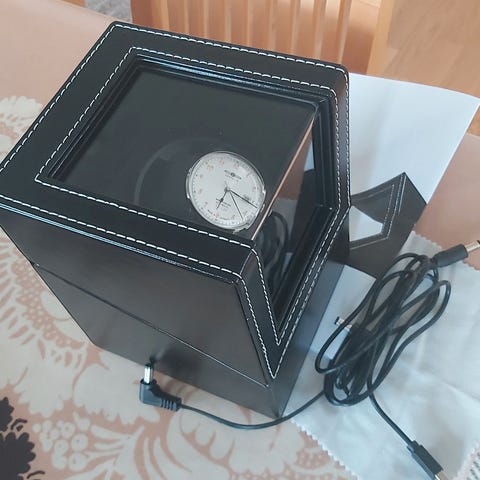 Hyväkuntoinen 6kk käytössä ollut ohjelmoitava kahden kellon kellonpyöritin. Erittäin hiljainen. Pyörimissuunta ja kierrokset/vrk valittavissa. Toimii niin verkkovirralla kuin myös paristoilla. Mukana kahdet kellotyynyt. Koko: L 22.0 cm, K 13.5 cm, S 17.0 cm
