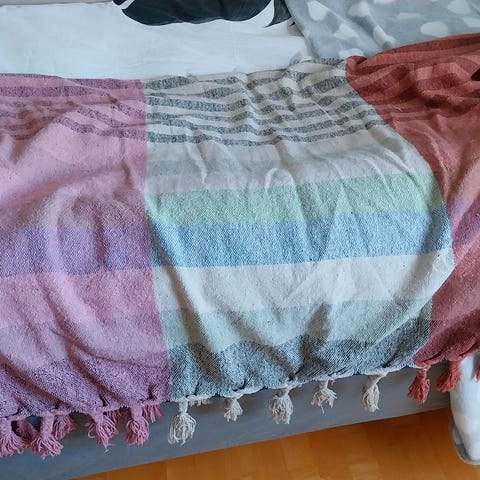 Kauniit keväisen hempeät sävyt ja lettihapsut.