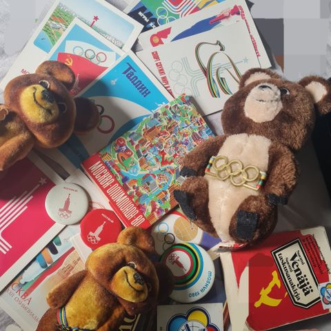 Moskovan 1980 olympialaisten maskotti Miska. Korkeus n. 20. Siistikuntoinen.