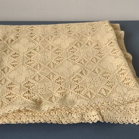 Kalastajalangasta käsin virkattu beige / luonnonvaalea päiväpeitto, joka sopii 120cm leveään sänkyyn. Koko 235cm-2m. Erittäin hyvässä kunnossa. Vintagea / retroa. Savuton talous, ei eläimiä.