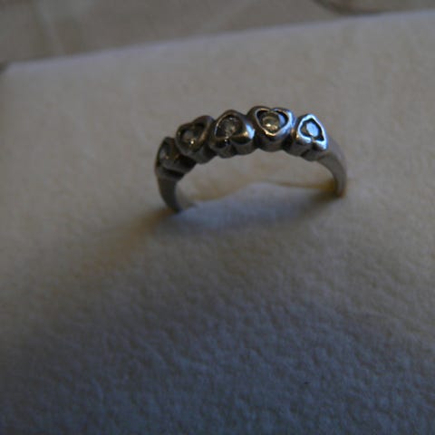 Kultajousen 925 hopeinen sormus roikkuvilla pallolla ja sydämellä. Koko n. 16 mm. Puhdistettu ja kiillotettu.