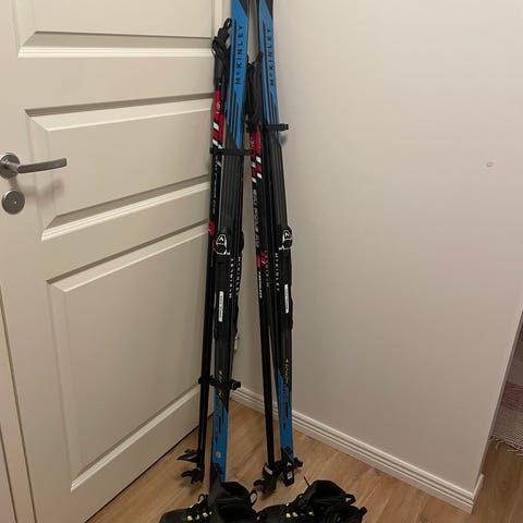 Muutamasti käytetty. Oikein hyvä kuntoiset. Side nnn. Sauvat 115cm.
