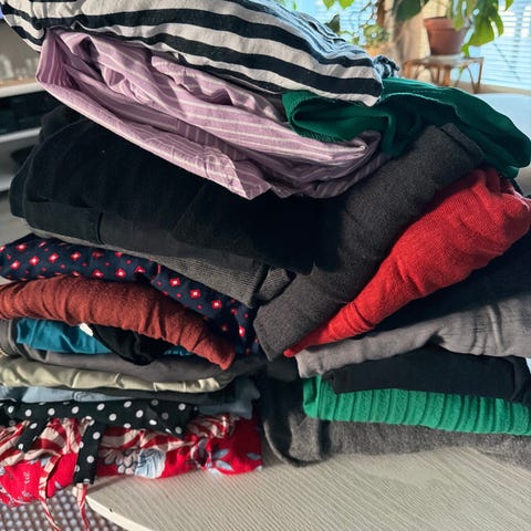Annetaan kaksi mustaa hametta (Toisessa koko ei näkyvillä, toinen koko 38) musta-valkokuvioinen (s) ja punainen hame (36).
