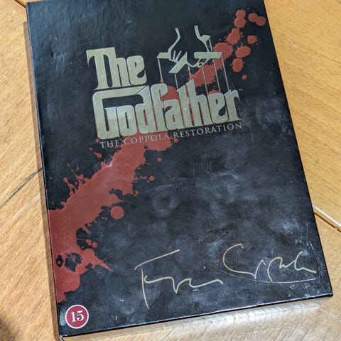 The Godfather The Coppola Restoration -elokuvalevy. Julkaisussa on Kummisetä-elokuvasarja Francis Ford Coppolan restauroimana versiona. Pakkaus on kotelo, jossa kannessa elokuvan logo ja The Coppola Restoration -merkintä. Sopii elokuvakokoelmaan ja klassikkoelokuvista kiinnostuneille.
