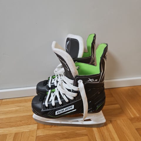 Bauer Nexus jääkiekkoluistimet lapsille, koko ehkä 35, ollut käytössä 10-11v pojalla. Väri musta punaisilla yksityiskohdilla ja valkoinen teräkotelo. Nauhakiinnitys. Sopivat jääkiekkokäyttöön ja yleiseen luisteluun. Pohjallisen pituus noin kuvassa näkyvän mittauksen mukainen. Materiaali synteettinen ulkokuori ja pehmustettu sisäosa.