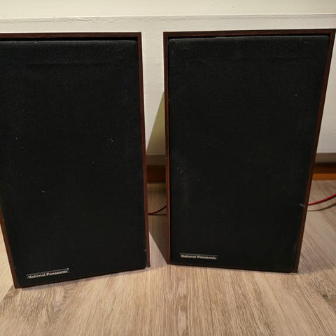 Puukotelot punaruskealla viimeistelyllä ja etupuolella kangas.