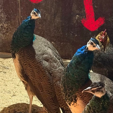 Myydään riikinkukko pariskunta, vain yhdessä. Kukko intiansininen ja kana valko/ruskea.