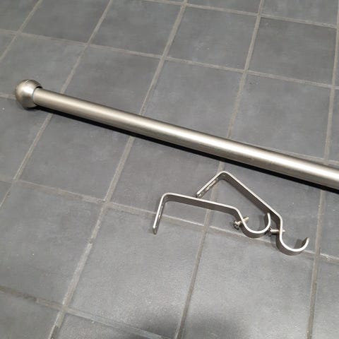 Uudenveroinen oviaukkoon säädettävä verhotanko ja verhorenkaat.