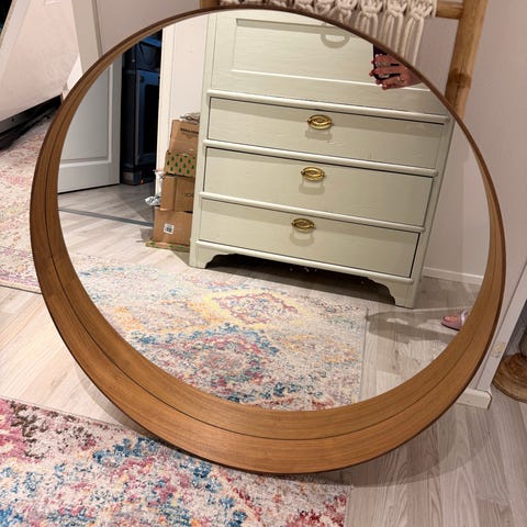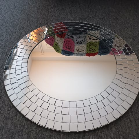Kolhulla varustettu iso pyöreä peili, Halkaisija 68 cm etsii uutta kotia .