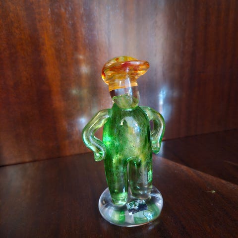 Myyntiin Nuutajärven lasitehtaan valmistama ja Jaakko Niemen suunnittelema Lyyli. Kunto loistava, ei huomautettavaa. Arabian tarra paikallaan. Signeeraus Jaakko Niemi Nuutajärvi Notsjö. Korkeus noin 11cm.