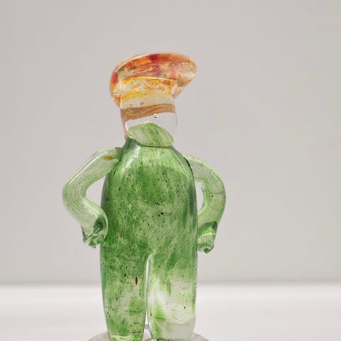 Myyntiin Nuutajärven lasitehtaan valmistama ja Jaakko Niemen suunnittelema Kaapro. Kunto loistava, ei huomautettavaa. Arabian tarra paikallaan. Signeeraus Jaakko Niemi Nuutajärvi Notsjö. Korkeus noin 12cm.