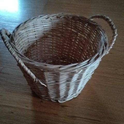 Vaalea pieni kori. Korkeus 22cm, pituus 24cm