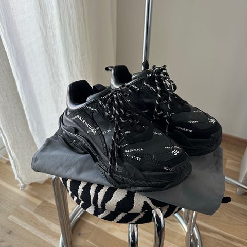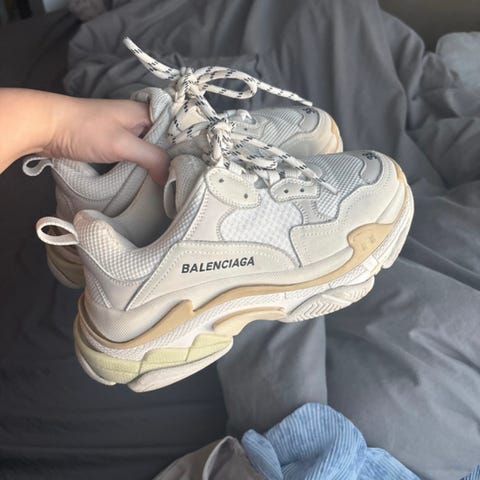 Myydään alkuperäiset Balenciaga Triple S -lenkkarit harmaa–keltainen väritys.