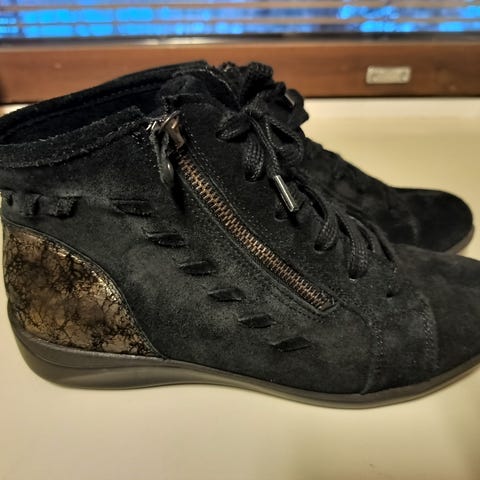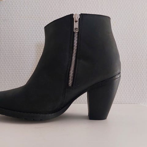 Mustat nahkaiset nilkkurit, vetoketju sivulla, korko 6cm.
