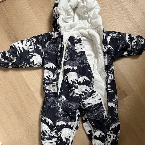 Myydään vuoden 2024 äitiyspakkauksesta tullut Reima by Moomin toppahaalari, jonka saa myös muutettua vauvalle toppapussiksi esim vaunuihin. Käännettävät hihan suut pitävät kädet lämpiminä. Kumiset jalkalenksut. Kaksirivinen vetoketju helpottaa pukemista. Edessä pienet heijastimet. Lämmin huppu.