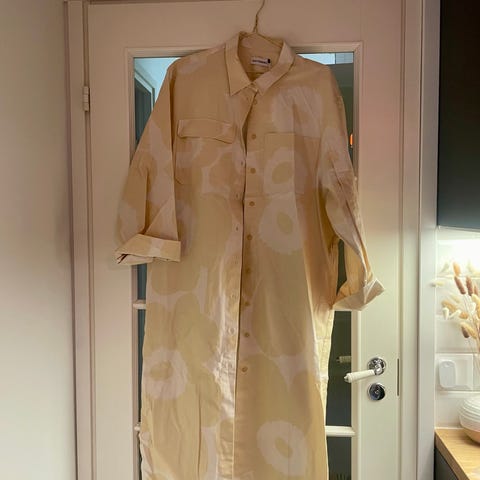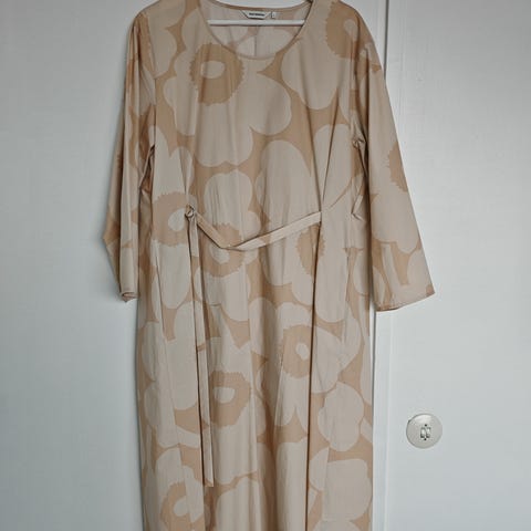 "Luomupuuvillapopliinista valmistetussa Monoliitti-paitamekossa on rento istuvuus ja suora leikkaus. Mekossa on Unikko-kuosi, joka on painettu Helsingissä. Mekossa on paitakaulus, nappisuljenta, väljät ¾-hihat ja sivusaumataskut."