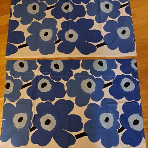 Marimekko vanha Unikko kappa 60-luvulta. Maritextil Suomi-Finland. Kapan pituus on n. 156 cm, korkeus n. 56 cm ja tankokuja n. 5.5 cm. Itseommeltu. Kappa on ollut aikoinaan käytössä, jotain pientä toki voi löytyä. Ei toridiiliä ja lähetän Matkahuollon paketilla 6 euroa.