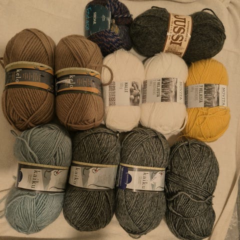 Myydään Novitan raitalankoja pakettina. Osa uudempaa koostumusta ja osa vanhempaa.