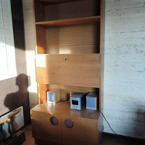 Hieno retro kaappi lukittavalla ja automaattivalolla toimivalla baarikaapilla