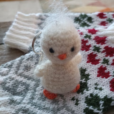 Mohair-langasta virkattu pieni hiirulainen. Voi kiinnittää joko renkaasta tai klipsusta haluamaansa kohteeseen.